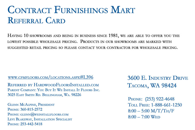 Whether you need a professional floor installation in Tacoma, or for us to provide a quality hardwood or laminate product. We have tested and tried to make sure all of our flooring is of supreme quality before offering it.